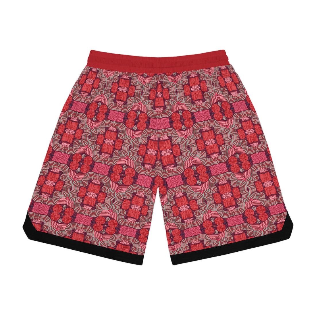 Red Geometric Print Basketball Rib Shorts (AOP)